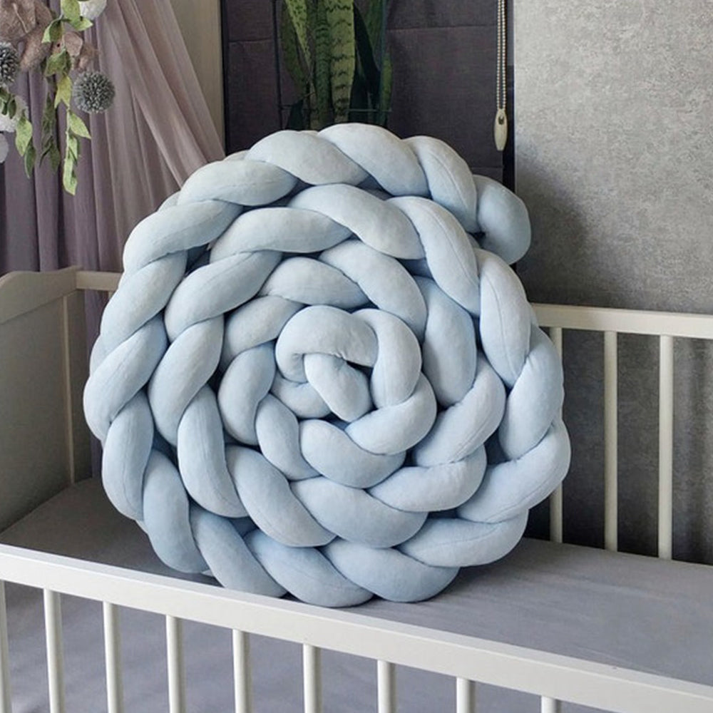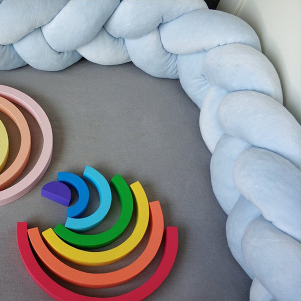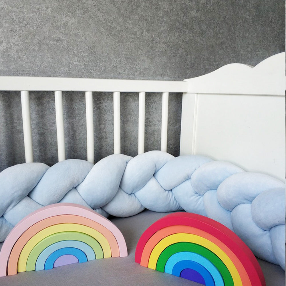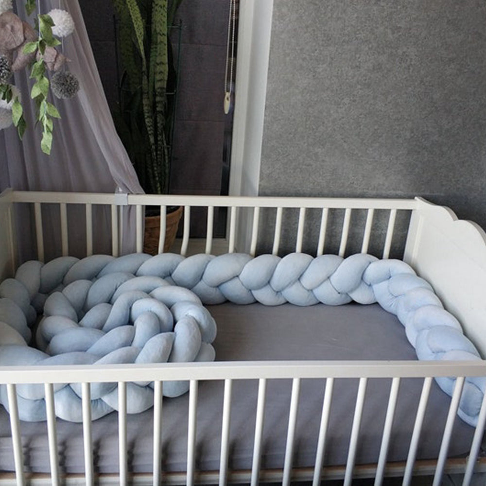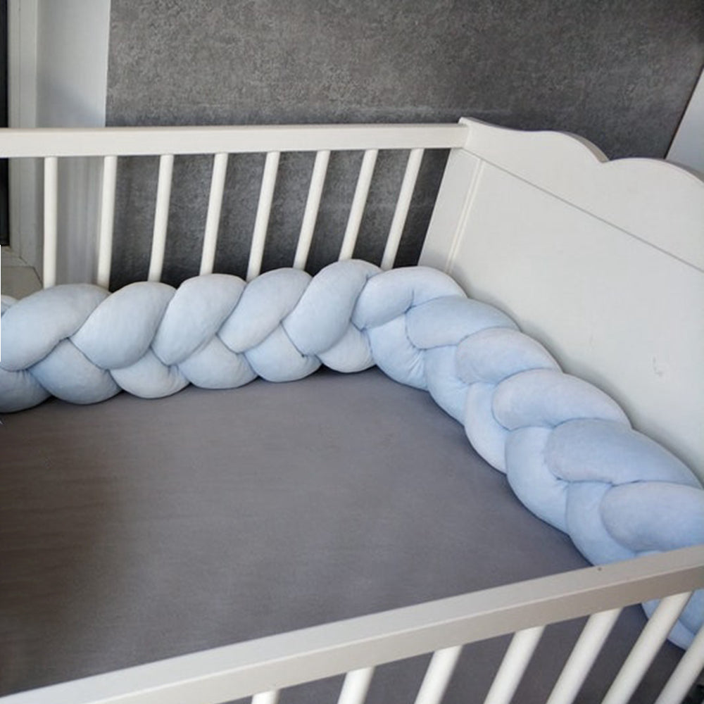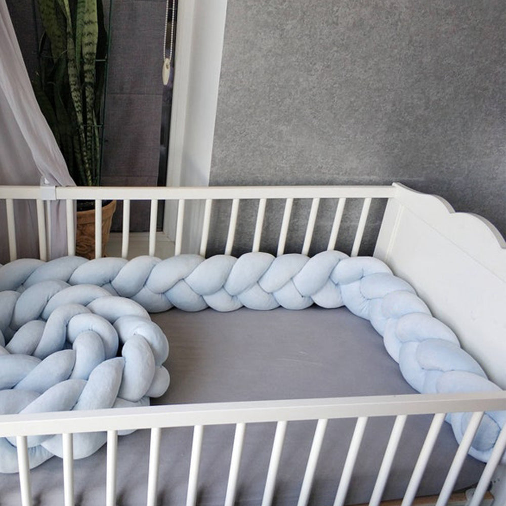 Avez-vous déjà observé votre bébé explorer son lit avec curiosité pendant ses phases d’éveil ? Le tour de lit tressé bleu ciel crée une limite rassurante et douce. Grâce à sa composition respirante et hypoallergénique, il maintient un environnement sain nuit après nuit.